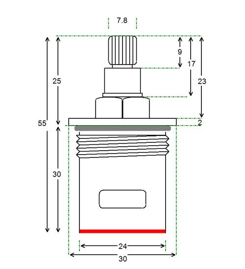 BSP half inch threaded collar with 24 teeth x 78mm height and spline height of 10 mm x 9.2 mm spline dia. Tap Magician are the UK experts in ceramic disc tap cartridges and leaky taps. We offer high quality fully compatible tap valve spares for most UK kitchen, basin, bath and shower mixers. Easily repair and doctor your leaking or dripping hot and cold taps. Traditional or ceramic valve type. We have experienced advisors available for any technical support you need help or advice with. We stock the spare parts for all of our valves for easy and cheap low cost future maintenance (ceramic disc internals and silicone seals and washers and o'rings). We offer a 12 month warranty on all of our products.