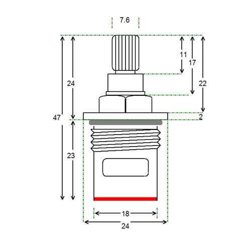 BSP half inch threaded collar with 18 teeth x 52mm height and spline height of 7 mm x 7.6 mm spline dia. Tap Magician are the UK experts in ceramic disc tap cartridges and leaky taps. We offer high quality fully compatible tap valve spares for most UK kitchen, basin, bath and shower mixers. Easily repair and doctor your leaking or dripping hot and cold taps. Traditional or ceramic valve type. We have experienced advisors available for any technical support you need help or advice with. We stock the spare parts for all of our valves for easy and cheap low cost future maintenance (ceramic disc internals and silicone seals and washers and o'rings). We offer a 12 month warranty on all of our products.