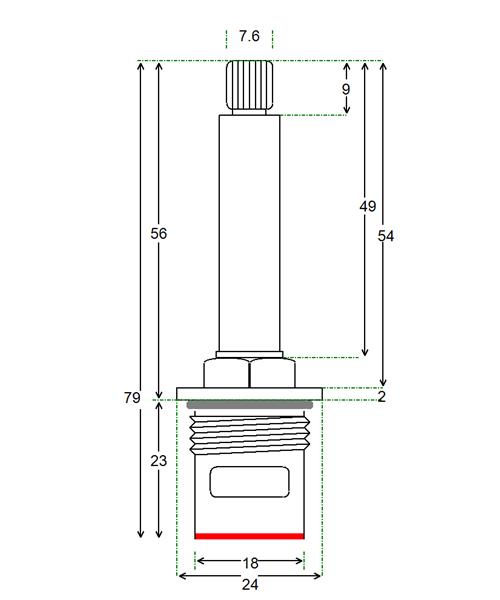 BSP half inch threaded flange with 18 teeth x 47mm overall height and spline height of 7 mm x 7.6 mm spline dia. Tap Magician are the UK experts in ceramic disc tap cartridges and leaky taps. We offer high quality fully compatible tap valve spares for most UK kitchen, basin, bath and shower mixers. Easily repair and doctor your leaking or dripping hot and cold taps. Traditional or ceramic valve type. We have experienced advisors available for any technical support you need help or advice with. We stock the spare parts for all of our valves for easy and cheap low cost future maintenance (ceramic disc internals and silicone seals and washers and o'rings). We offer a 12 month warranty on all of our products.