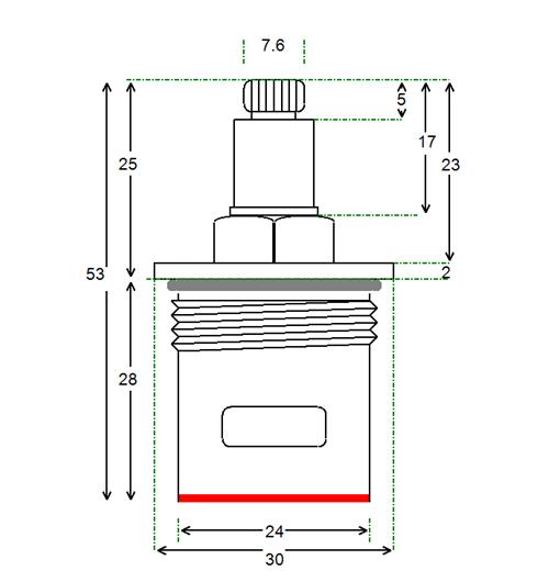 BSP half inch without threaded collar with 20 teeth x 45mm overall height and spline height of 12 mm x 7.6 mm spline dia. Tap Magician are the UK experts in ceramic disc tap cartridges and leaky taps. We offer high quality fully compatible tap valve spares for most UK kitchen, basin, bath and shower mixers. Easily repair and doctor your leaking or dripping hot and cold taps. Traditional or ceramic valve type. We have experienced advisors available for any technical support you need help or advice with. We stock the spare parts for all of our valves for easy and cheap low cost future maintenance (ceramic disc internals and silicone seals and washers and o'rings). We offer a 12 month warranty on all of our products.