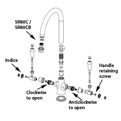BENCHMARX RIOM KITCHEN TAP SPARES Tap Magician compatible spares for the Benchmarx Riom Traditional Monobloc Mixer 177011. If your tap is leaking or dripping it is time to replace the quarter turn ceramic disc cartridges. You will need RiomQA-AB for the cold water side and RiomQA-CR for the hot water side. Cartridges have 20 teeth on spline. Original cartridges known by spare part code VS02-C20 1/2〞CD Valve. Replacement flow straightener aerator available. Ceramic lever tap reviver kit available in chrome (Q153J-PHCER). This style is different to the original lever so both need to be replaced. 934960-Traditional Monobloc Mixer Chrome 177011