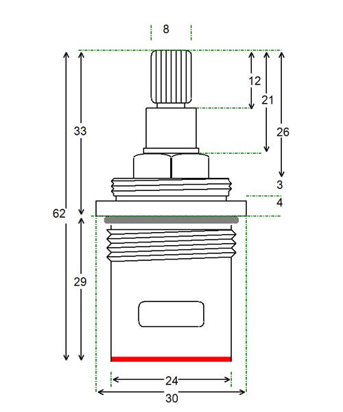 BSP half inch threaded collar with 20 teeth x 55mm height and spline height of 10 mm x 7.6 mm spline dia. Tap Magician are the UK experts in ceramic disc tap cartridges and leaky taps. We offer high quality fully compatible tap valve spares for most UK kitchen, basin, bath and shower mixers. Easily repair and doctor your leaking or dripping hot and cold taps. Traditional or ceramic valve type. We have experienced advisors available for any technical support you need help or advice with. We stock the spare parts for all of our valves for easy and cheap low cost future maintenance (ceramic disc internals and silicone seals and washers and o'rings). We offer a 12 month warranty on all of our products.