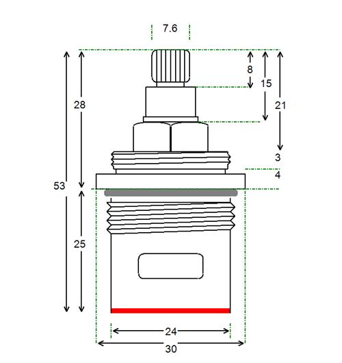 e BSP half inch without threaded collar with 20 teeth x 54mm overall height and spline height of 10 mm x 7.6 mm spline dia. Tap Magician are the UK experts in ceramic disc tap cartridges and leaky taps. We offer high quality fully compatible tap valve spares for most UK kitchen, basin, bath and shower mixers. Easily repair and doctor your leaking or dripping hot and cold taps. Traditional or ceramic valve type. We have experienced advisors available for any technical support you need help or advice with. We stock the spare parts for all of our valves for easy and cheap low cost future maintenance (ceramic disc internals and silicone seals and washers and o'rings). We offer a 12 month warranty on all of our products.