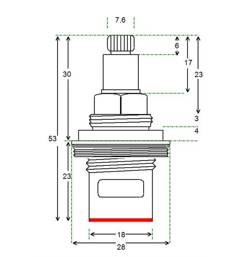 BSP half inch threaded flange with 18 teeth x 51mm overall height and spline height of 14 mm x 7.6 mm spline dia. Tap Magician are the UK experts in ceramic disc tap cartridges and leaky taps. We offer high quality fully compatible tap valve spares for most UK kitchen, basin, bath and shower mixers. Easily repair and doctor your leaking or dripping hot and cold taps. Traditional or ceramic valve type. We have experienced advisors available for any technical support you need help or advice with. We stock the spare parts for all of our valves for easy and cheap low cost future maintenance (ceramic disc internals and silicone seals and washers and o'rings). We offer a 12 month warranty on all of our products.
