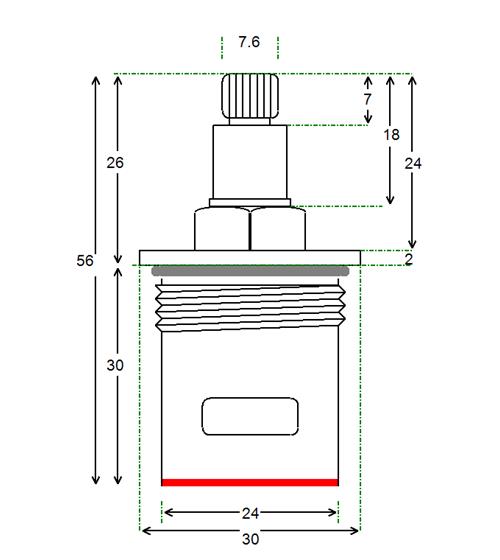 BSP half inch without threaded collar with 28 teeth x 52mm overall height and spline height of 8 mm x 7.7 mm spline dia. Tap Magician are the UK experts in ceramic disc tap cartridges and leaky taps. We offer high quality fully compatible tap valve spares for most UK kitchen, basin, bath and shower mixers. Easily repair and doctor your leaking or dripping hot and cold taps. Traditional or ceramic valve type. We have experienced advisors available for any technical support you need help or advice with. We stock the spare parts for all of our valves for easy and cheap low cost future maintenance (ceramic disc internals and silicone seals and washers and o'rings). We offer a 12 month warranty on all of our products.