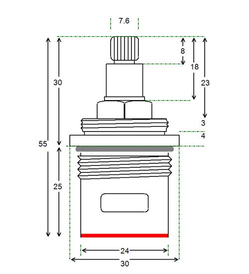 BSP half inch without threaded collar with 28 teeth x 55mm overall height and spline height of 11 mm x 7.8 mm spline dia. Tap Magician are the UK experts in ceramic disc tap cartridges and leaky taps. We offer high quality fully compatible tap valve spares for most UK kitchen, basin, bath and shower mixers. Easily repair and doctor your leaking or dripping hot and cold taps. Traditional or ceramic valve type. We have experienced advisors available for any technical support you need help or advice with. We stock the spare parts for all of our valves for easy and cheap low cost future maintenance (ceramic disc internals and silicone seals and washers and o'rings). We offer a 12 month warranty on all of our products.