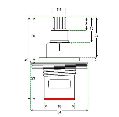 BSP half inch threaded flange with 24 teeth x 49mm overall height and spline height of 7 mm x 7.6 mm spline dia. This product is suitable for 1/2" x 24 x 49mm. Tap Magician are the UK experts in ceramic disc tap cartridges and leaky taps. We offer high quality fully compatible tap valve spares for most UK kitchen, basin, bath and shower mixers. Easily repair and doctor your leaking or dripping hot and cold taps. Traditional or ceramic valve type. We have experienced advisors available for any technical support you need help or advice with. We stock the spare parts for all of our valves for easy and cheap low cost future maintenance (ceramic disc internals and silicone seals and washers and o'rings). We offer a 12 month warranty on all of our products.